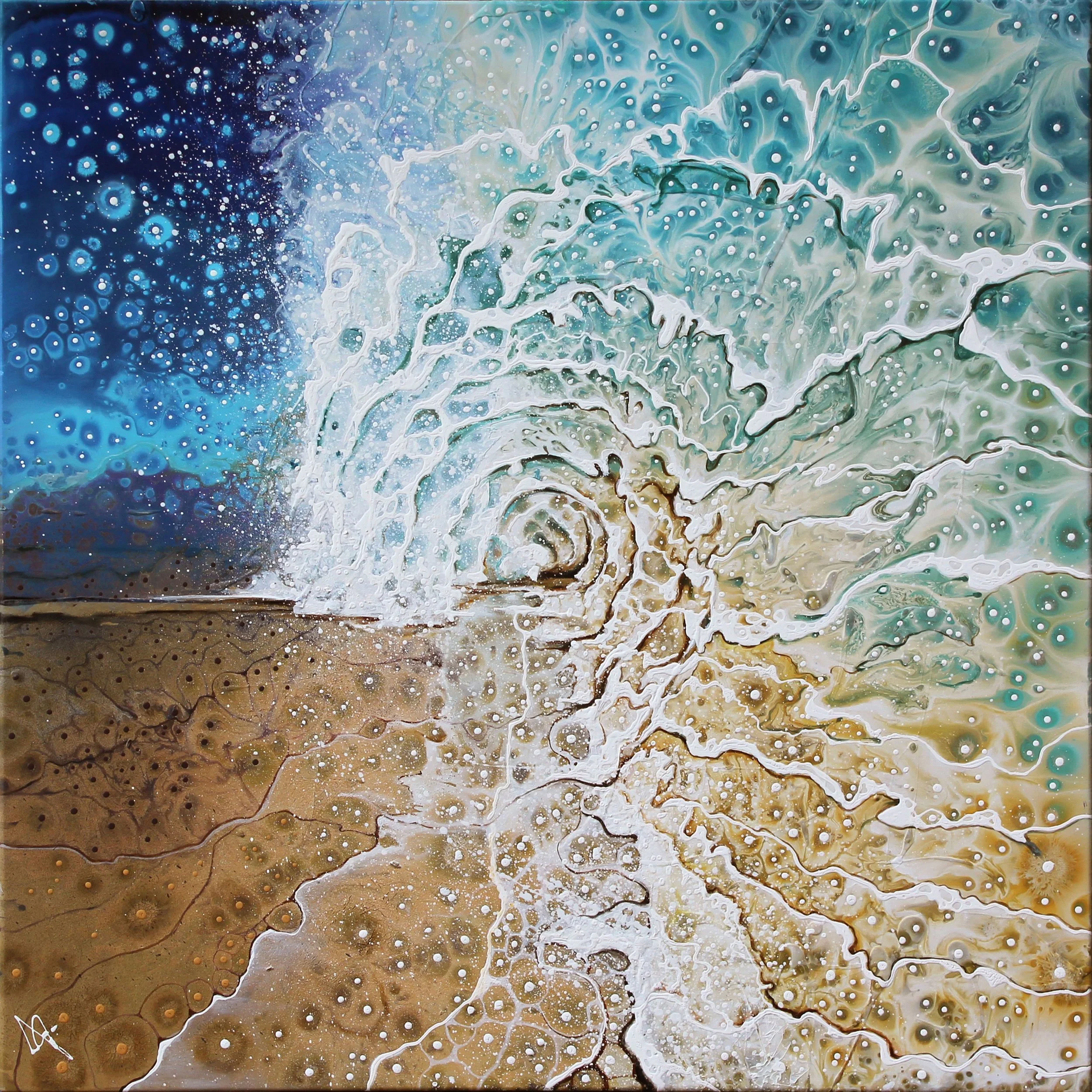 Formada en artes aplicadas y diseño gráfico. Mi padre nos enseño a pintar al óleo desde pequeños. Trás muchos años pintando temática figurativa donde siempre me faltaba algo, descubro el arte de pintura acrílica vertida donde desarrollo un sistema que abre una puerta a la magia en el proceso creativo. Con este sistema puedo expresarme sin límite en gran formato contando historias y dejando al espectador crear su propia historia, activando su imaginación o su propia inspiración. Tras el vertido intervengo la obra con rotuladores, óleos, pinceles, espátulas, biberones, espray, siguiendo unos patrones que veo con nitidez. Las células que se forman crean un cuadro orgánico, vivo. El mensaje es de unicidad, esas células están en nuestro propio cuerpo, en todo lo que nos rodea y en el basto universo.