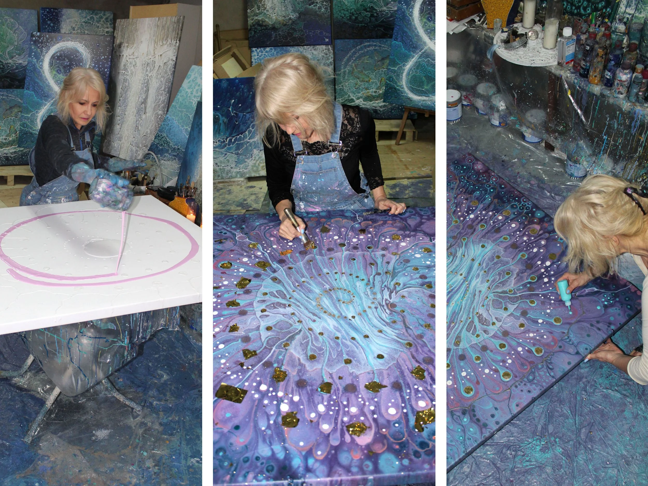 El camino interior es el camino de vuelta a casa, al hogar, allí donde tan solo soy una pequeña estrella brillante, donde me he desconectado del mundo de la forma y vuelvo a ser libre. Este camino lo imagino en espiral hacia el interior profundizando en capas, como órbitas de diferentes grados de conciencia. A simple vista parece que el mundo exterior me ofrece algo muy nítido, un personaje, objetos atráctivos, seres queridos, apegos y cuesta dejarlo atrás para sumergirme en las profundidades de lo difuso, pero en cada capa me siento más ligera, el éter hace que pierda identidad, y me compensa con la ilusión de estar unida a todo mirando desde otra dimensión.