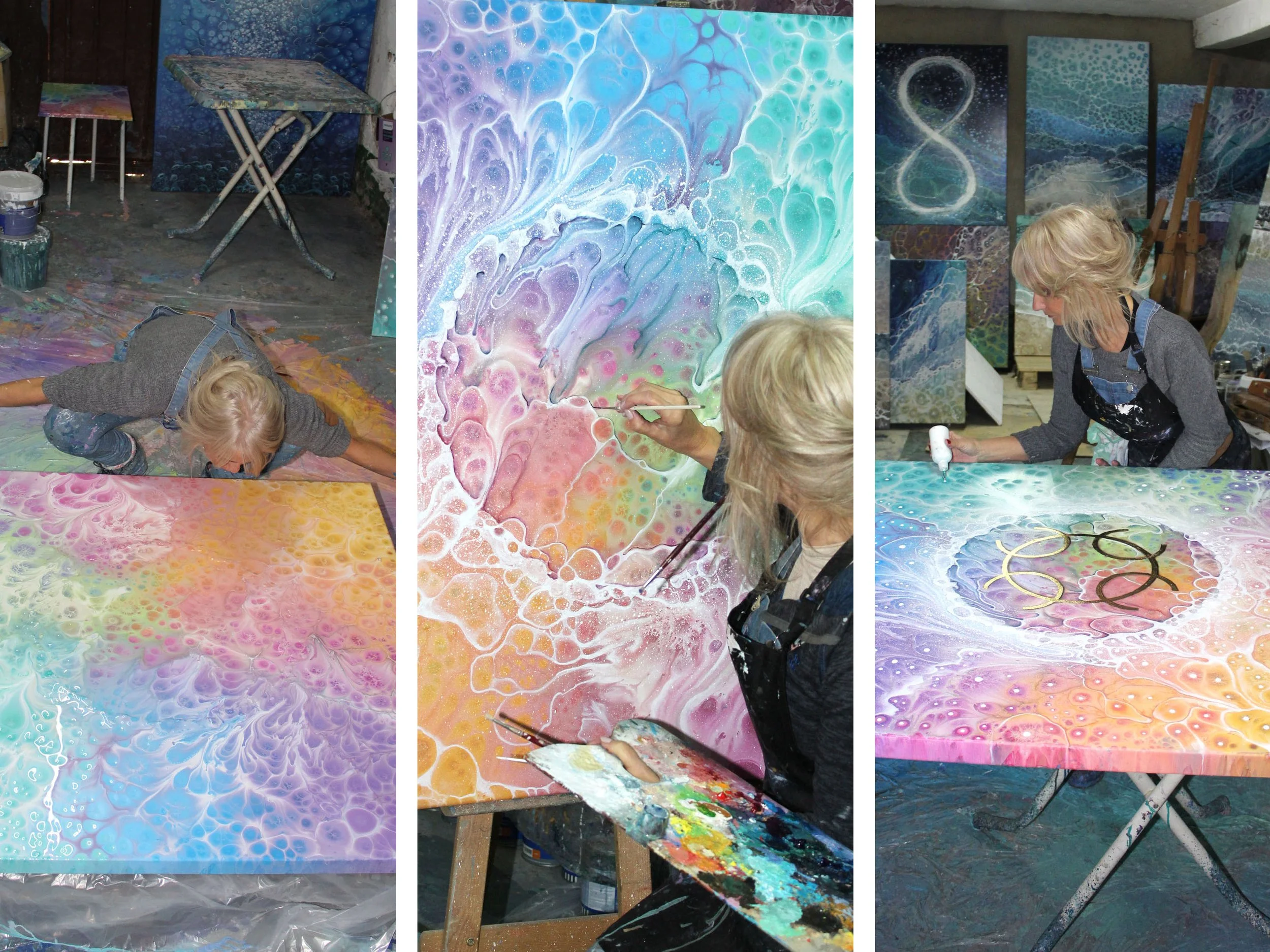La runa del pozo de los deseos en pan de oro representa la fortuna. Un arco iris, representa la magia del deseo concedido. Es un cuadro para materializar los sueños, para hacer los deseos realidad. Esos deseos que hemos dejado en la sombra, en un pozo literal. El arco iris con su magia despejará la oscuridad, traerá luz, fortuna y éxito, con tonos y matices que jamás pudiste imaginar.