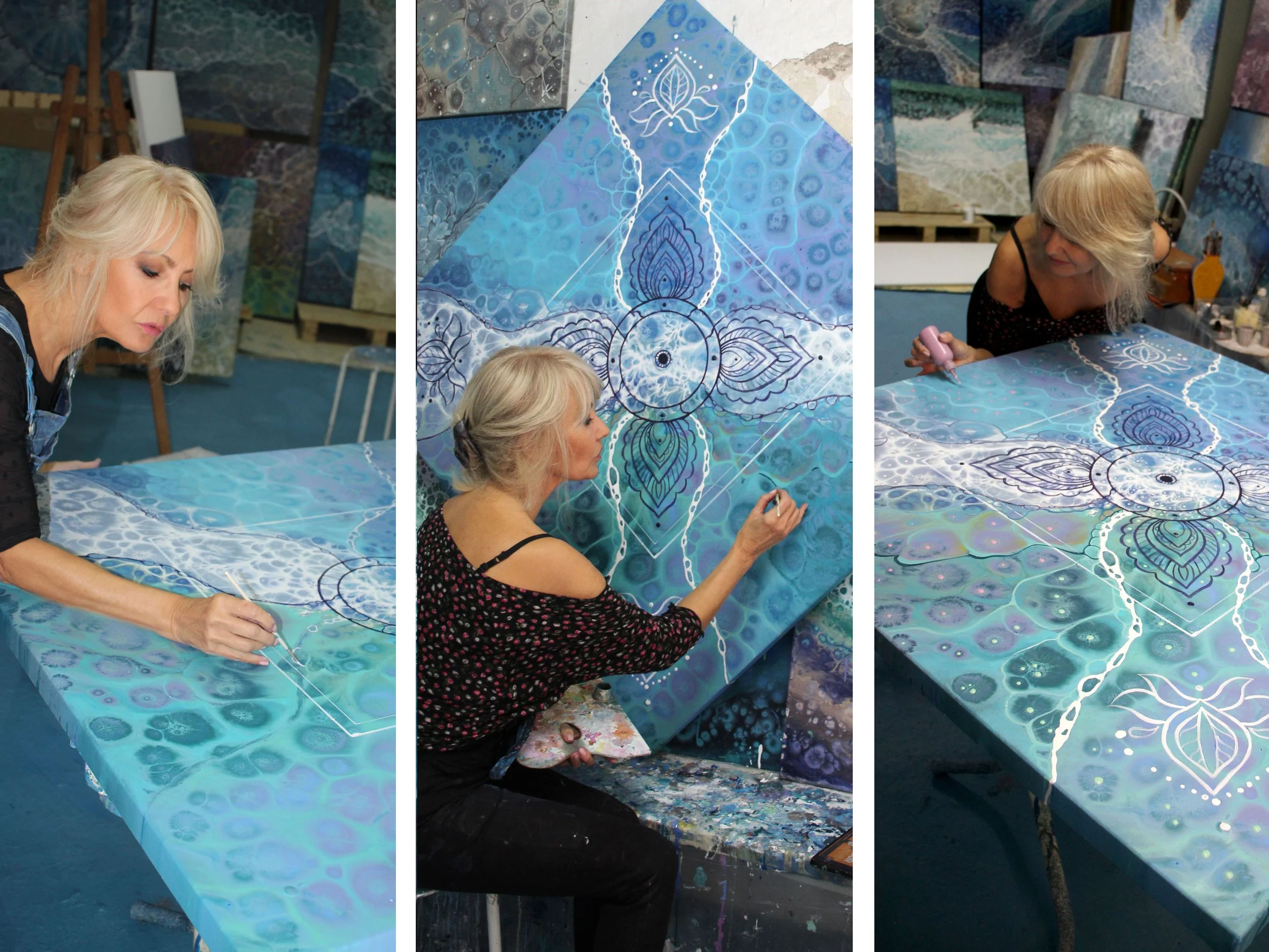 Este tablero, representa nuestra alma encarnada, va girado, colocado en forma de rombo o flecha, directo hacia planos superiores del ser. Me gustaría destacar la importancia de la parte central, el corazón de la obra, desde esa totalidad de las infinitas posibilidades, se expande buscando el equilibrio en la cruz de los cuatro puntos cardinales (norte, sur, este, oeste) con un eje cabeza/raiz) y destacar el equilibrio de los cuatro elementos (tierra, aire, fuego y agua, que todos contenemos: sino tengo tierra no soy práctico ni ordenado en la materia, sino tengo fuego no tengo energía ni estusiasmo, sino tengo agua soy frio, rigido rechazo las emociones, sino tengo aire me aislo y rechazo lo intelectual) para no estar ni en exceso ni en defecto en la partida es esencial intentar restablecer un equilibrio.
