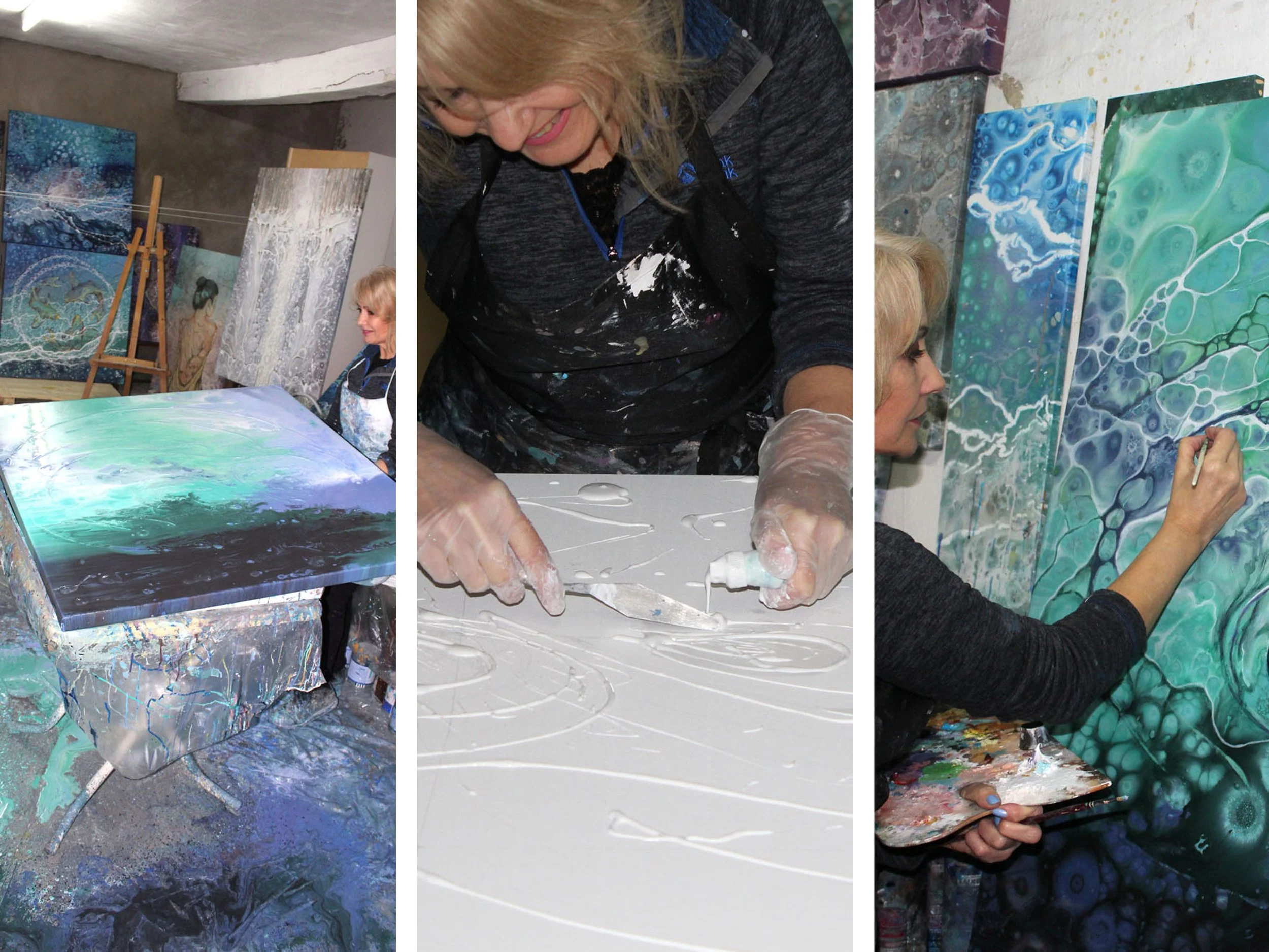 Segundo cuadro de la trilogía sobre el poder del agua como catalizador de emociones (miedo-comprensión-sanación). Emoción de asombro ante lo nuevo que se crea ante nuestros ojos, lo inesperado, un momento de apertura, de lucidez, casi una epifanía. Cuando cae una creencia, se quita el velo y otra realidad sale a la luz. Sorpresa, fascinación y "compresión" ("Ahora lo veo!!!!!!!") La emoción del asombro es consciencia, es el comienzo de la sanación...
